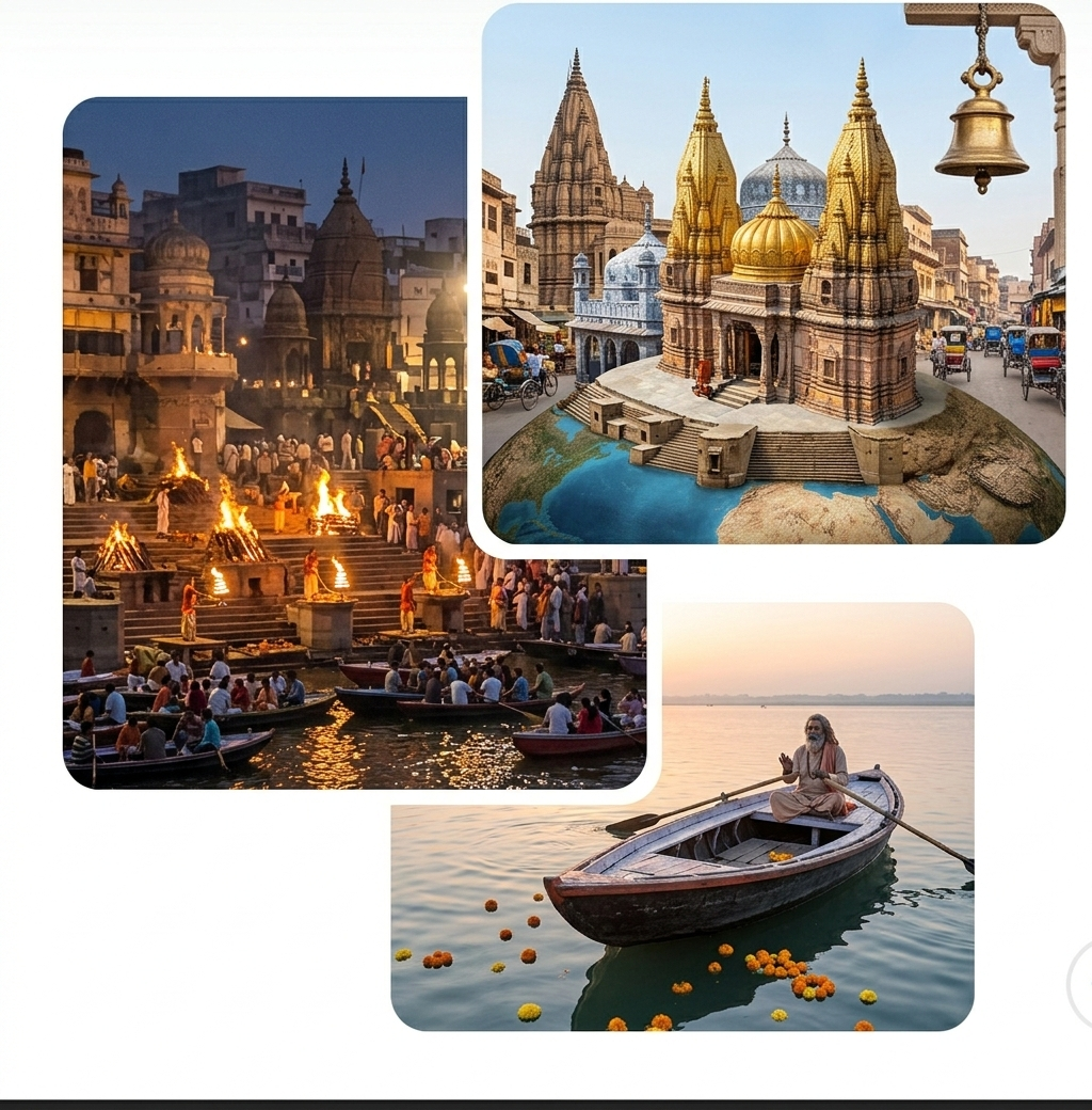 Discover the spiritual charm of Kashi (Varanasi), the oldest living city in the world. Witness the mesmerizing Ganga Aarti and explore ancient temples including Kashi Vishwanath.